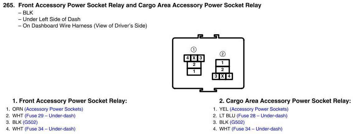 Front Accessory Power Socket Relay And Cargo Area Accessory Power Socket Relay Connector View