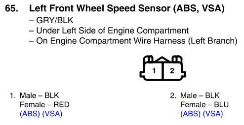 Left Front Wheel Speed Sensor Connector View (ABS, VSA)