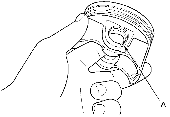 1. Install a piston pin snap ring (A) only on one side.