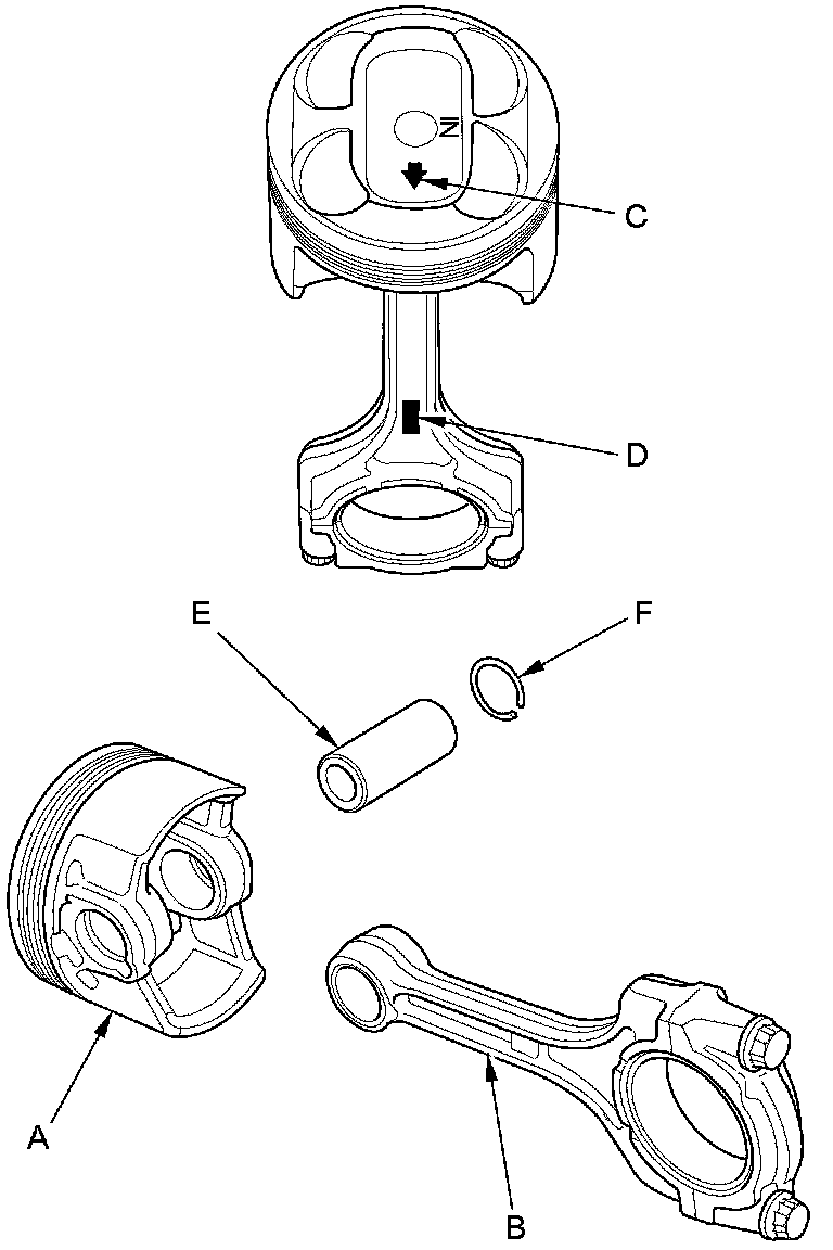 NOTE: Inspect the piston, the piston pin, and the connecting rod when they are at room temperature.