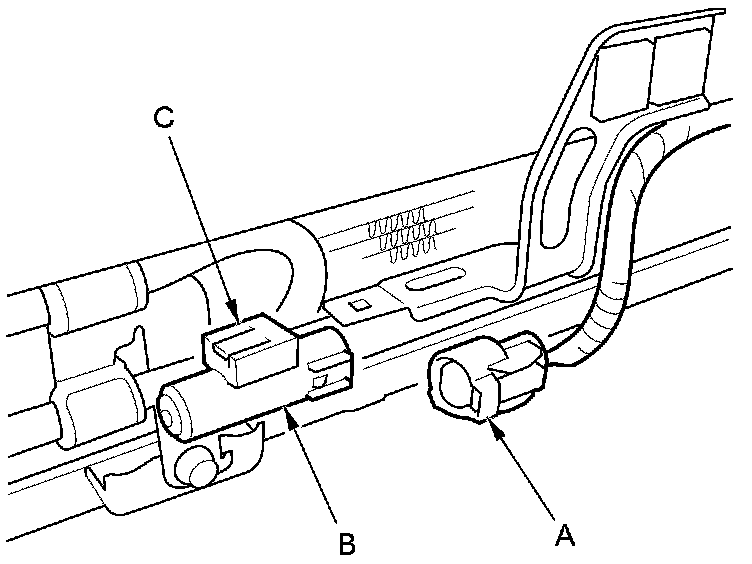 2. Lift the tab (C) to release the lock, then remove the outside air temperature sensor from the front bumper.