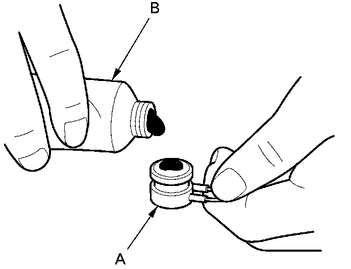 2. Replace the thermal protector (A) with a new one, and apply silicone grease (P/N 08798-9028) (B) to the bottom of the thermal protector.