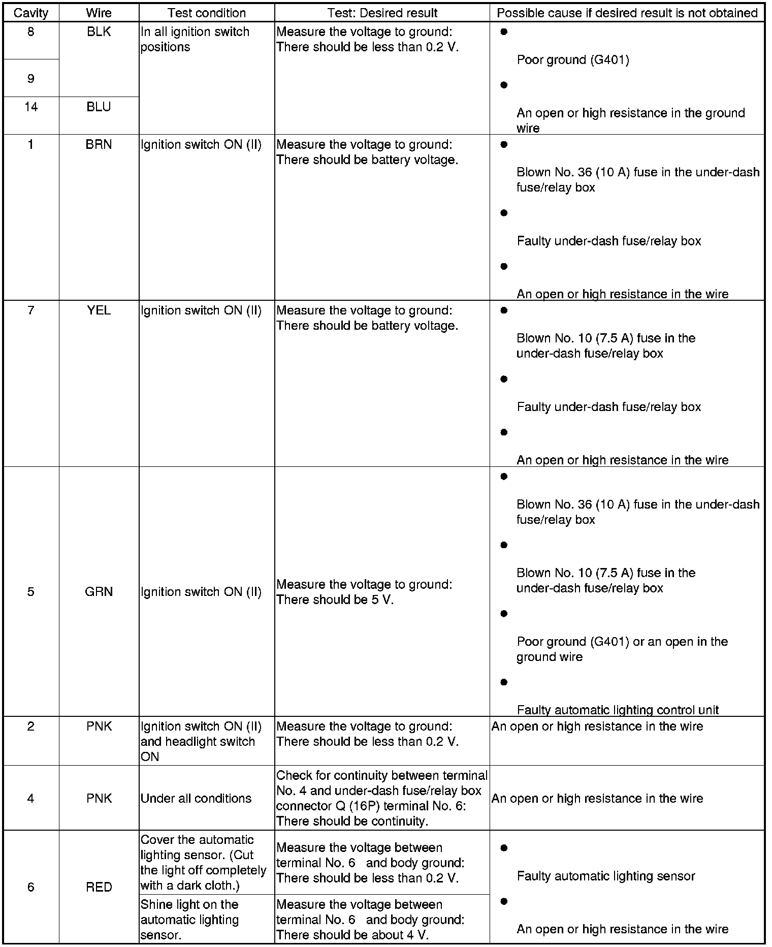 - If the input test proves OK, replace the automatic lighting control unit.