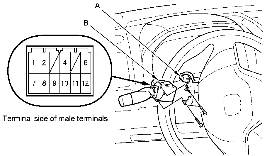 3. Disconnect the 12P connector (A) from the combination light switch (B).