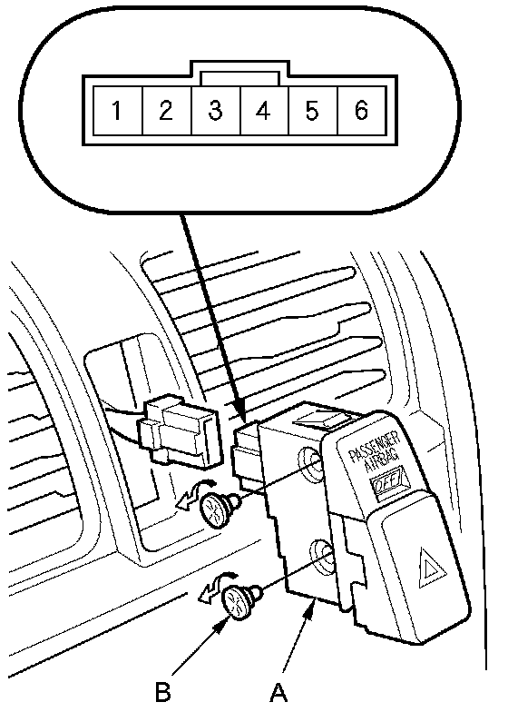 2. Remove the hazard warning switch (A), and disconnect the 6P connector from the switch.