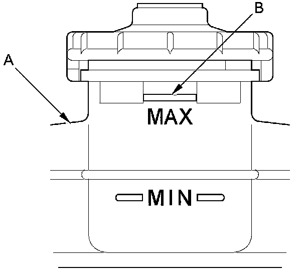 1. Make sure the brake fluid level in the reservoir (A) is at the MAX (upper) level line (B).
