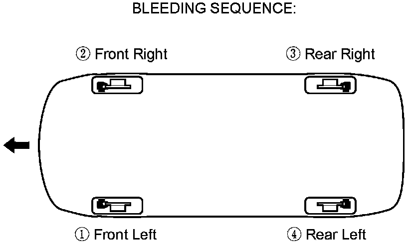 NOTE: Bleed the calipers or the wheel cylinders in the sequence shown.