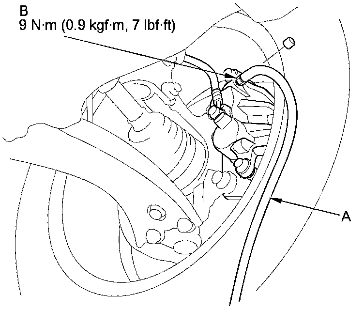 4. Attach a length of clear drain tube (A) to the bleed screw (B), then loosen the bleed screw to allow air to escape from the system. Then tighten the bleed screw securely.