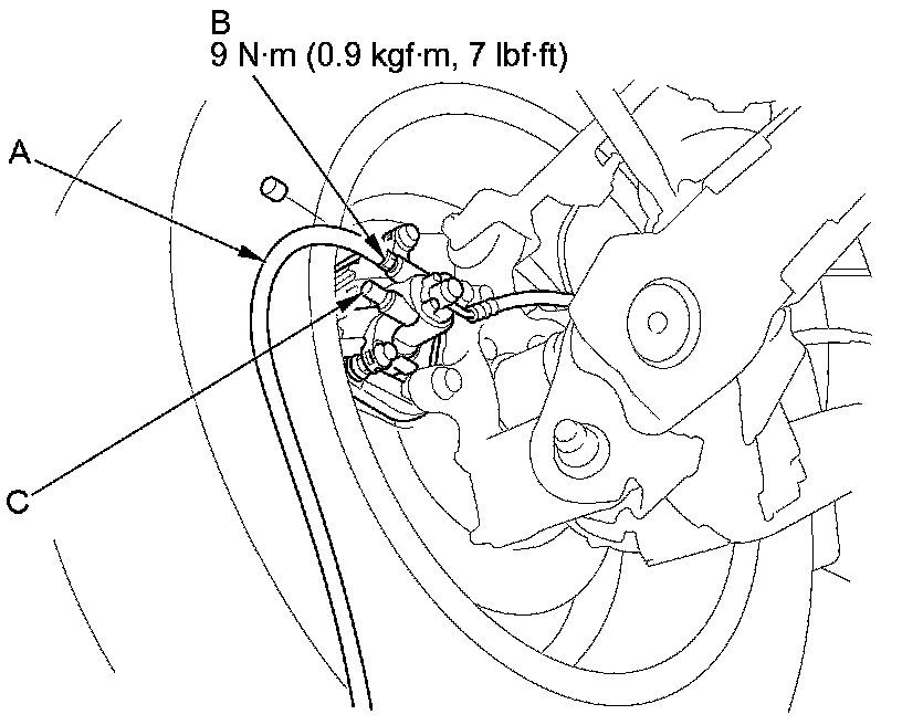 NOTE: Do not loosen the special bolt (C) on the rear caliper.