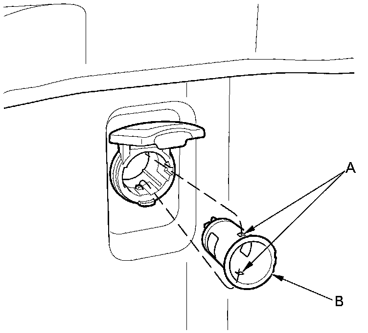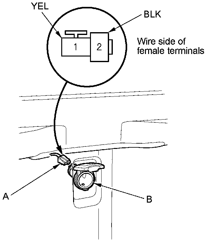 2. Disconnect the 2P connector (A) from the cargo area accessory power socket (B).