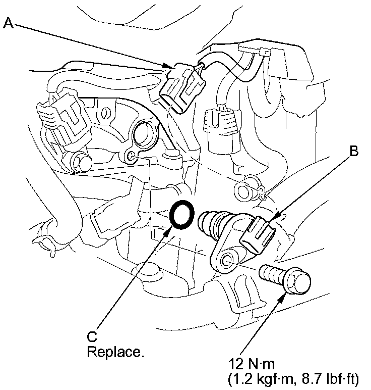 4. Install the parts in the reverse order of removal with a new O-ring (C).