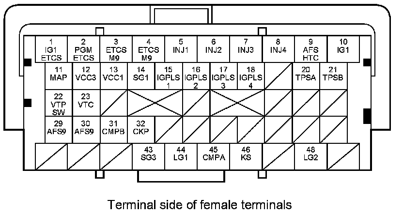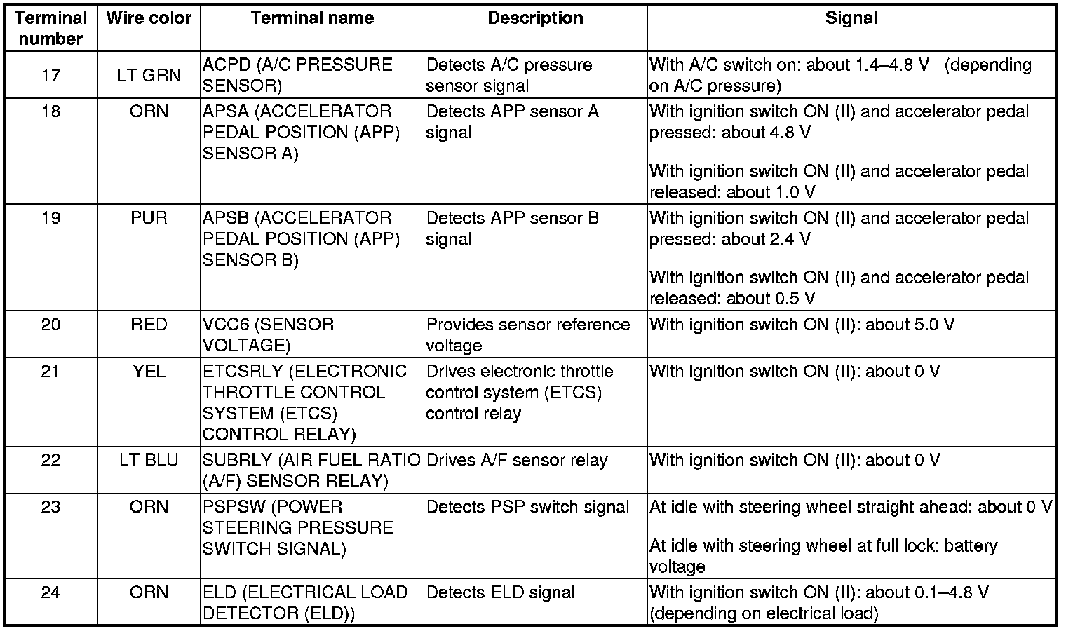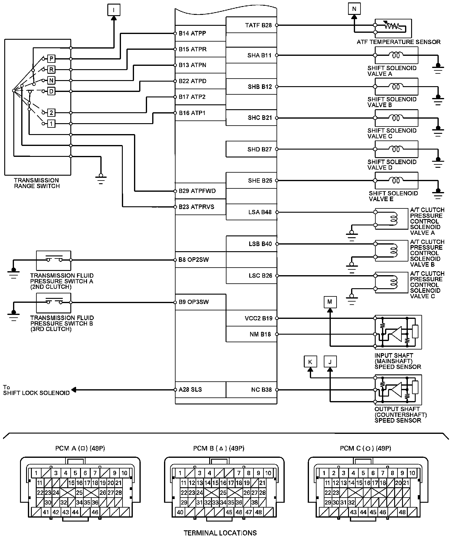 PCM Inputs and Outputs at PCM Connector A ((square)) (49P)