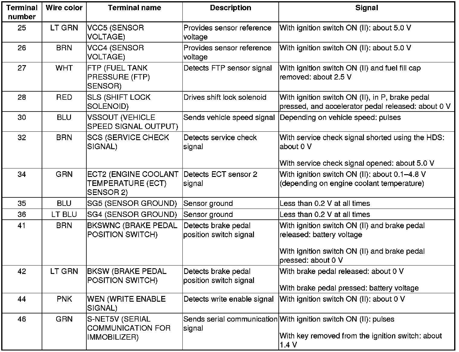 After the ignition switch is turned to LOCK (0), the PCM stays on (about 60 minutes). If the PCM connector is disconnected during this time, the PCM may be damaged. To cancel this mode, disconnect the negative cable from the battery or jump the SCS line with the HDS after the ignition switch is turned to LOCK (0).