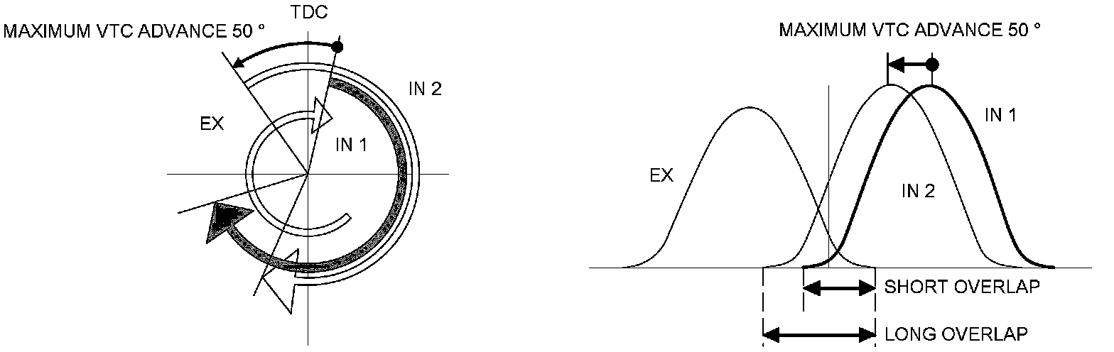- If a malfunction occurs, the VTC system control is disabled and the valve timing is fixed at the fully retarded position.