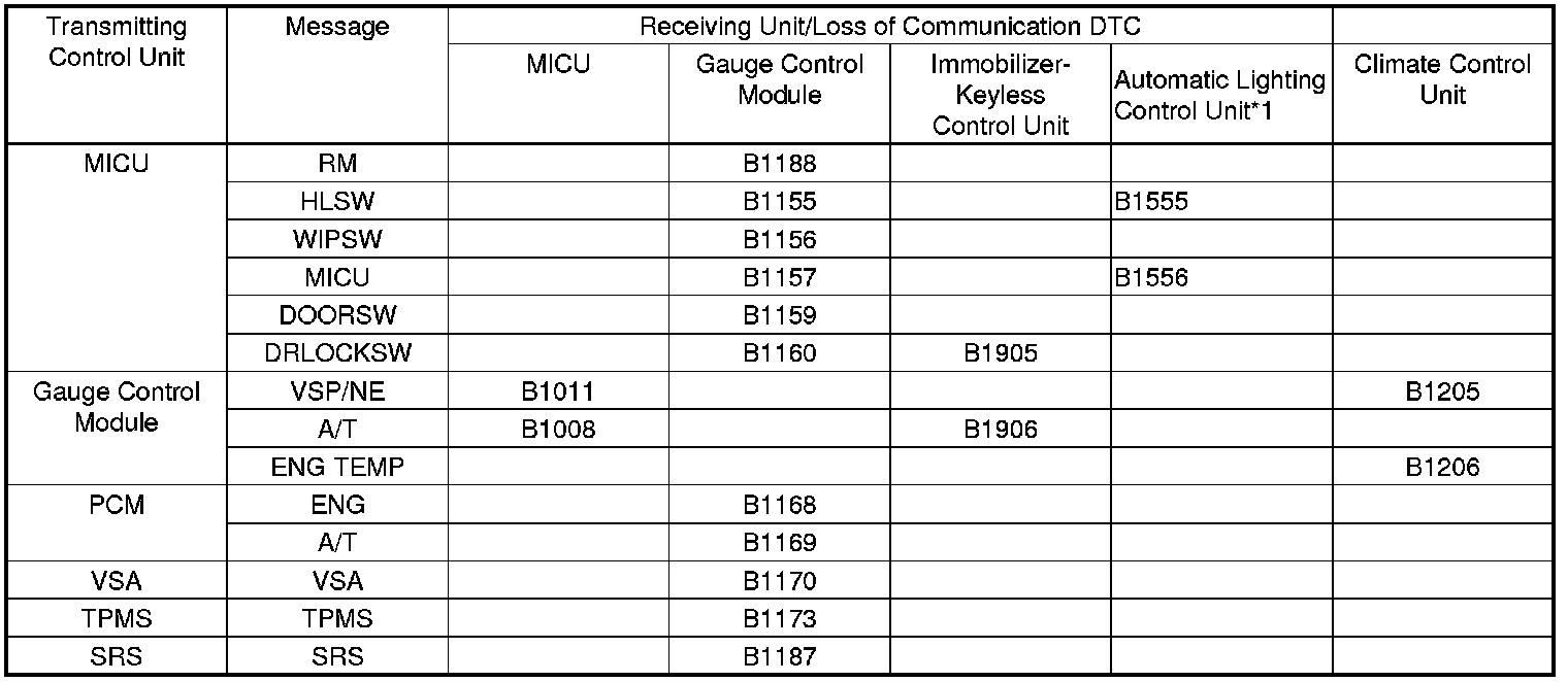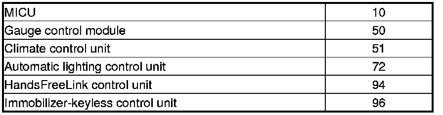 When an ECU is unable to communicate with the other ECUs on the CAN circuit, the other control units will set loss of communication DTCs. Use this chart to find the control unit that is not communicating with the other control units on the CAN circuit.
