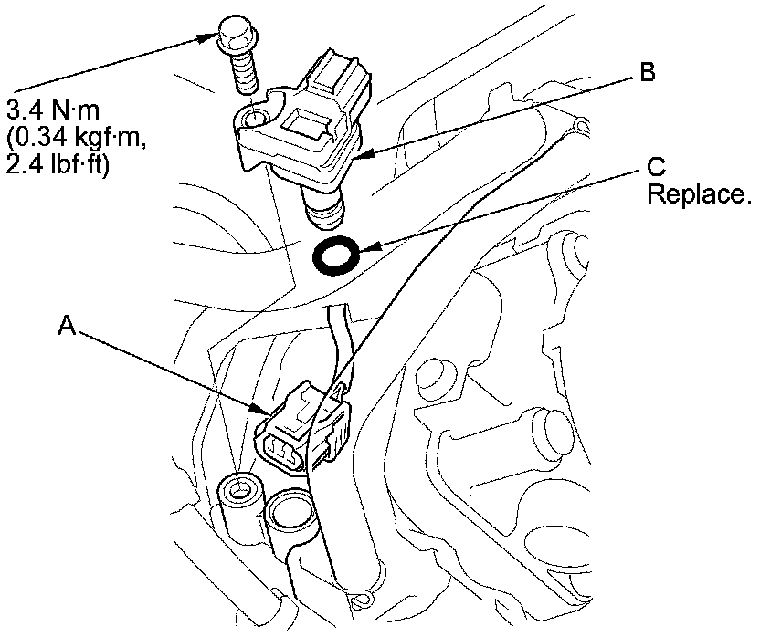 Install the parts in the reverse order of removal with a new O-ring (C).