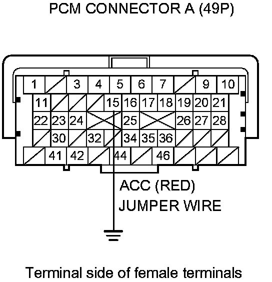 13. Momentarily connect PCM connector terminal A15 to body ground with a jumper wire several times.