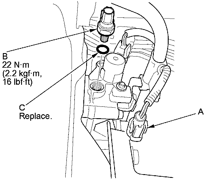 3. Install the parts in the reverse order of removal with a new O-ring (C).
