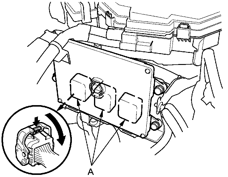 3. Remove the harness clamp bracket (A) from the PCM cover.