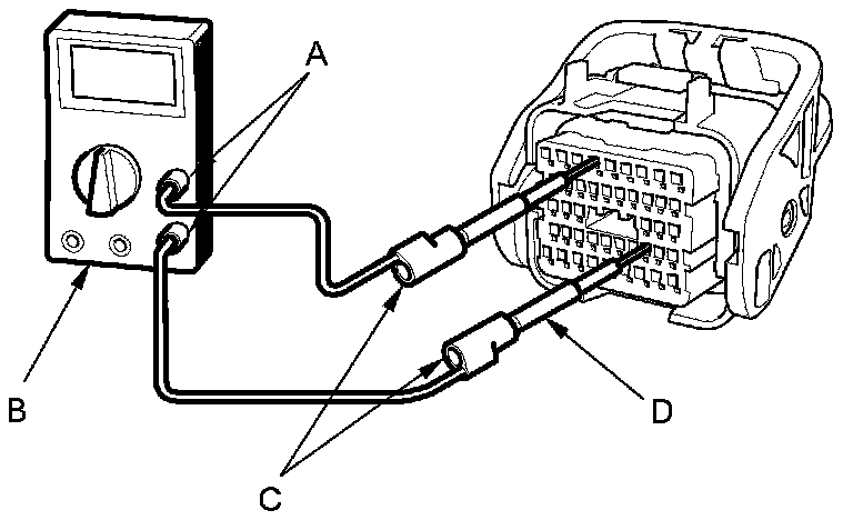 - To prevent damage to the connector terminals, do not insert test equipment probes, paper clips, or other substitutes as they can damage the terminals. Damaged terminals cause a poor connection, and an incorrect measurement.