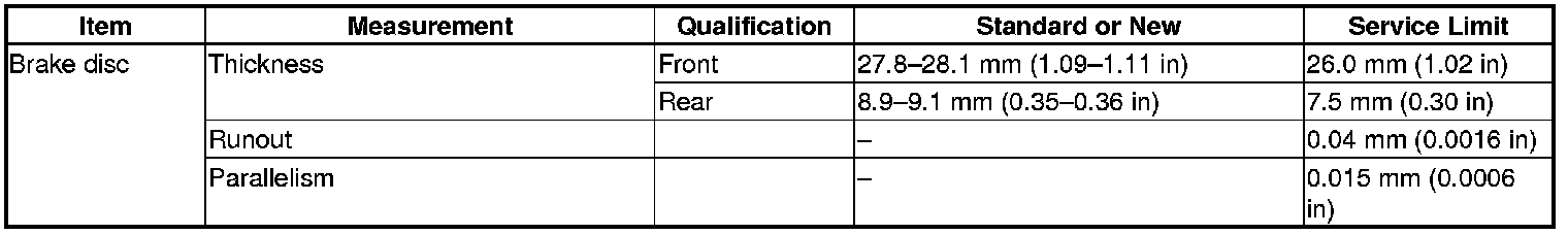 Brake Disc Specification(s)
