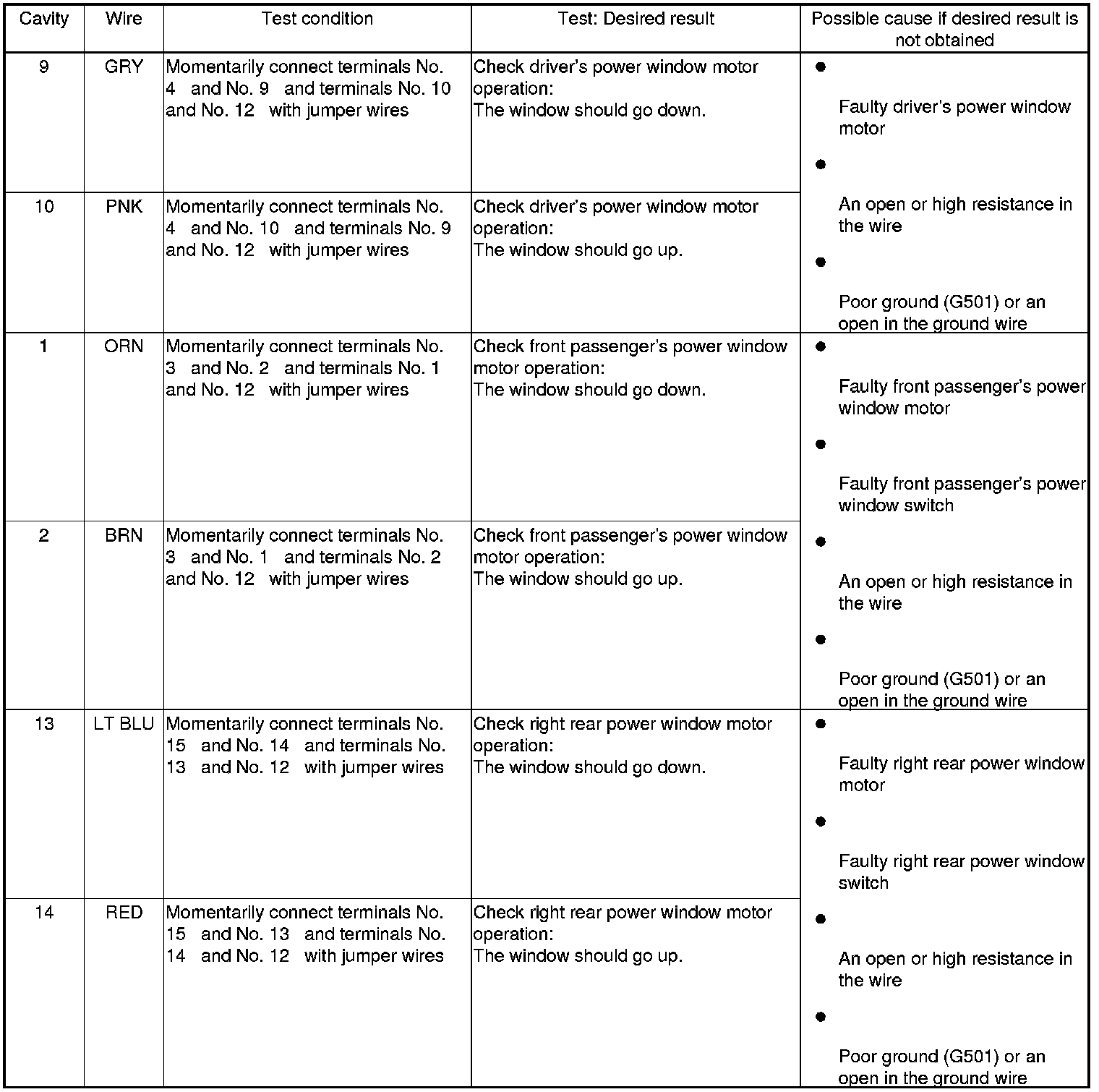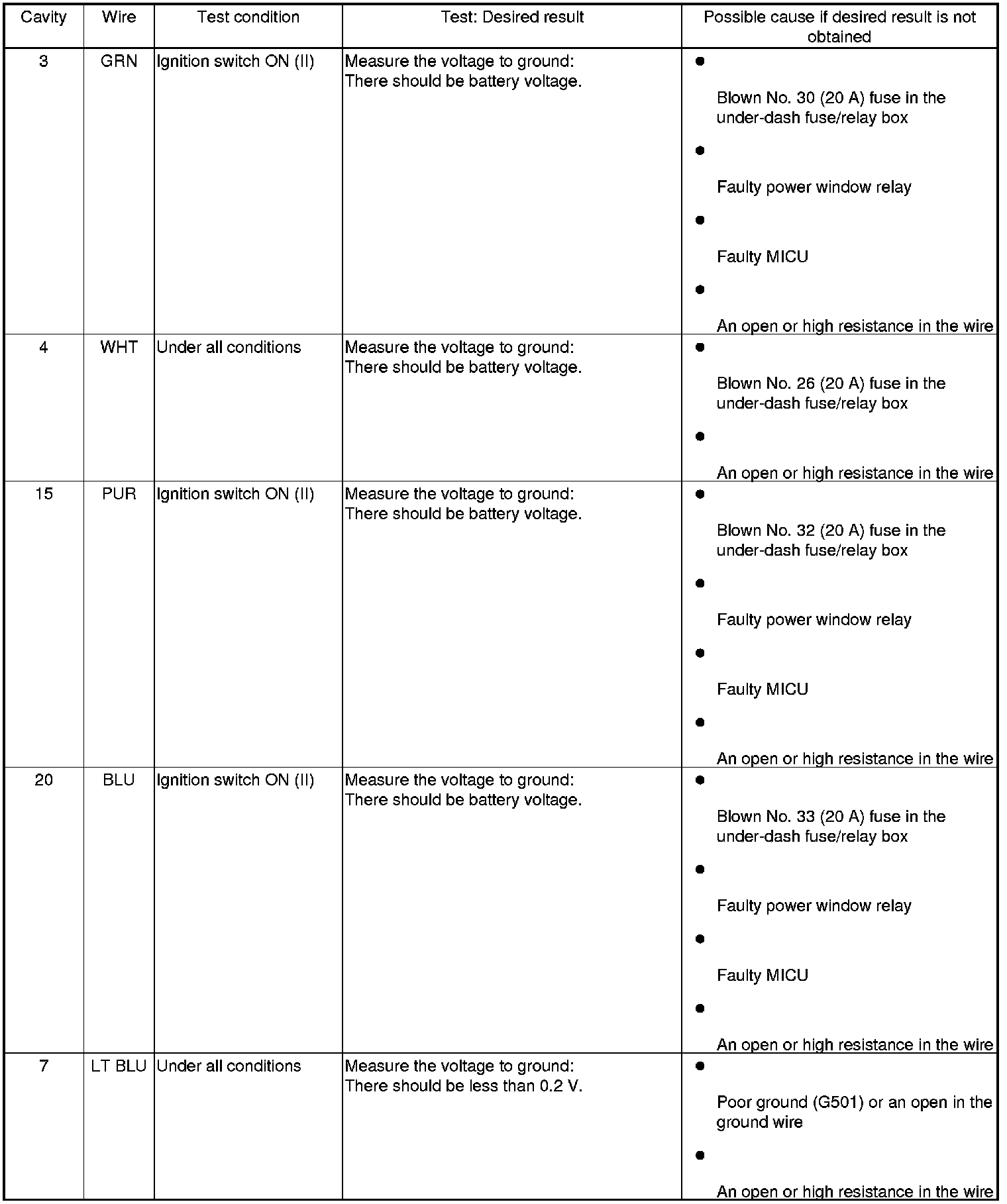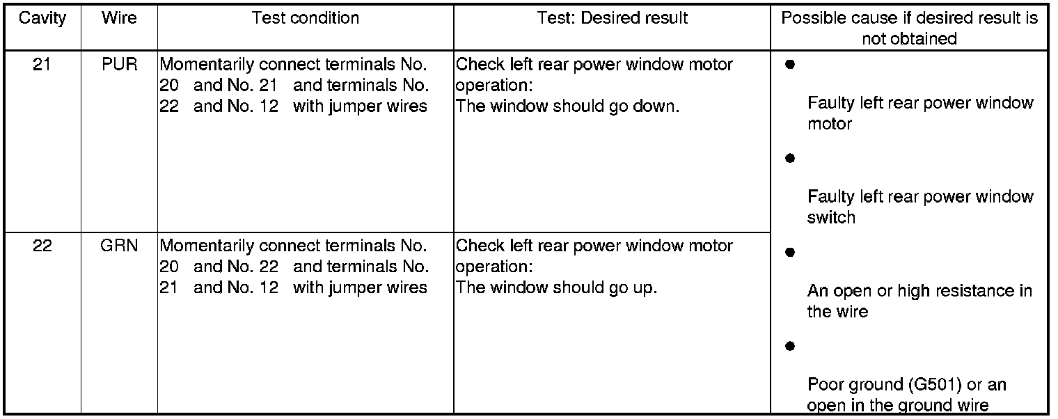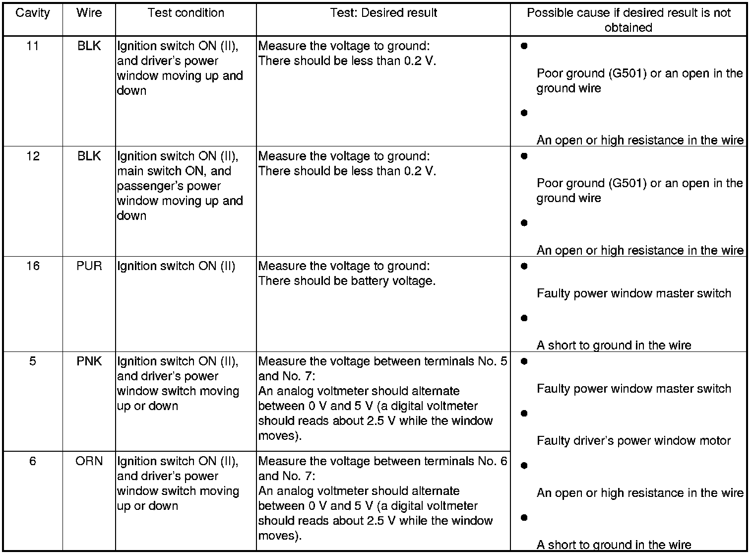 - If all the input tests prove OK, the control unit must be faulty; replace the power window master switch, and go to step 6.