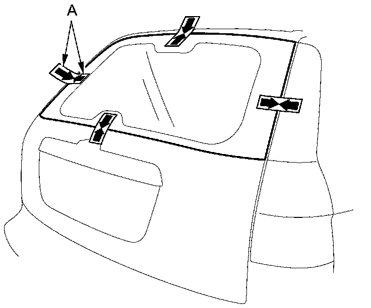 4. If the old rear window will be reinstalled, make alignment marks (A) across the glass and the body with a grease pencil.