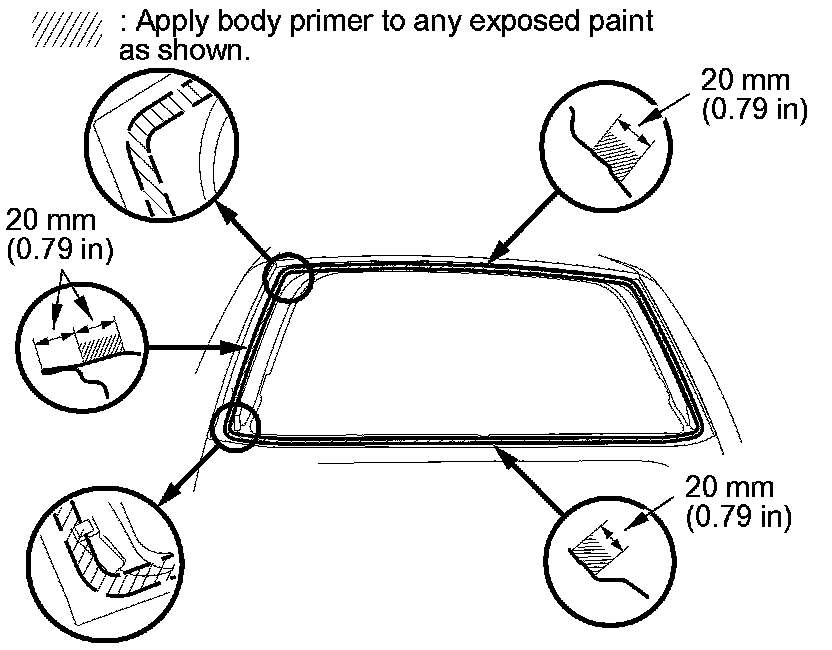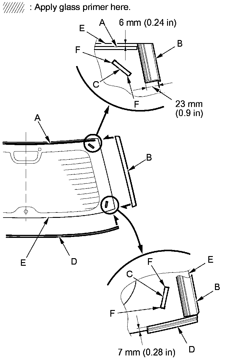- Do not apply body primer to the rear window, and do not mix up the body primer applicator and the glass primer applicator.
