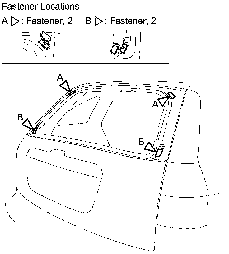 13. Attach the fasteners (A, B) with adhesive tape to the tailgate as shown.