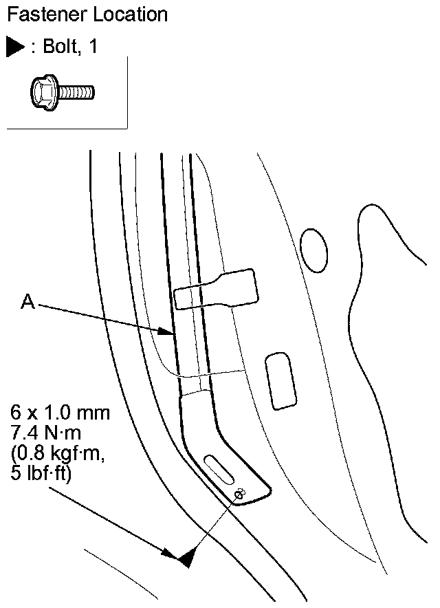 4. Remove the bolt from the lower end of the rear lower channel (A).