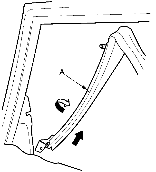 6. Release the rear lower channel (A) from the glass by pulling the channel up.