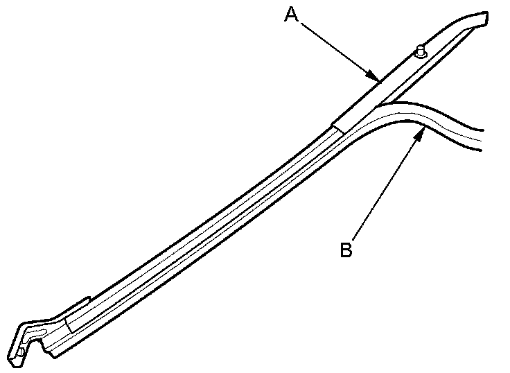 8. Remove the rear lower channel (A) from the glass run channel (B).