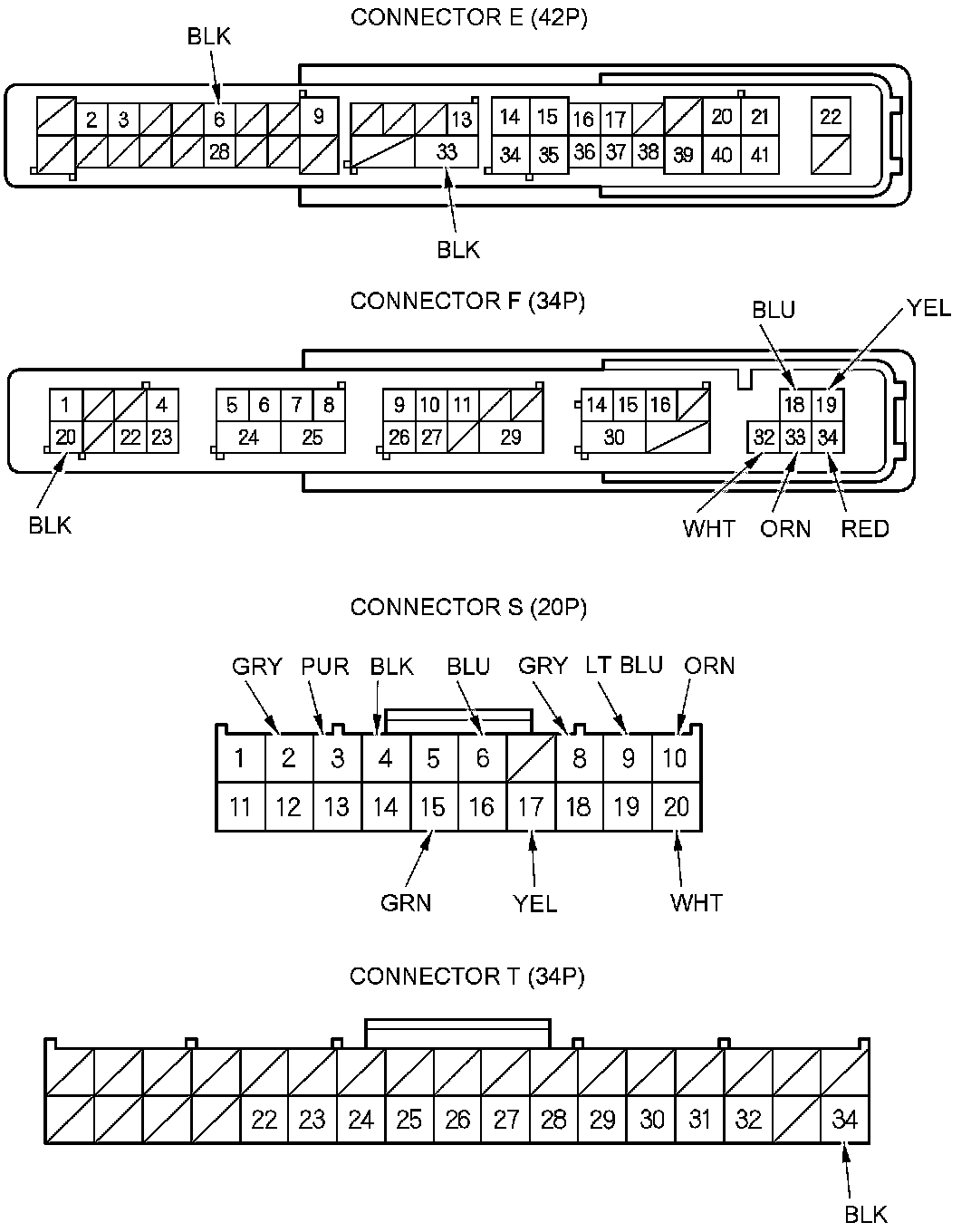 NOTE: All connector views are wire side of female terminals.