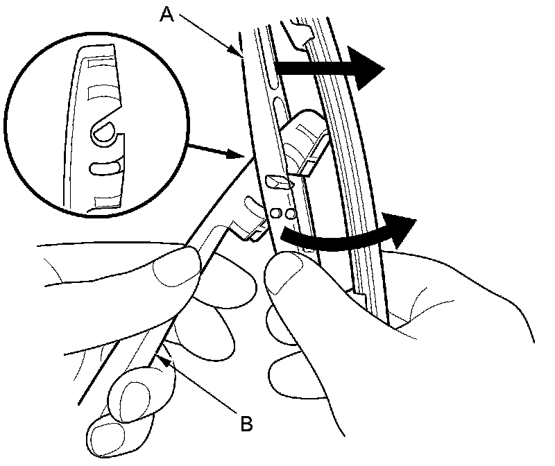 2. Turn the blade (A) to release it from the wiper arm (B).