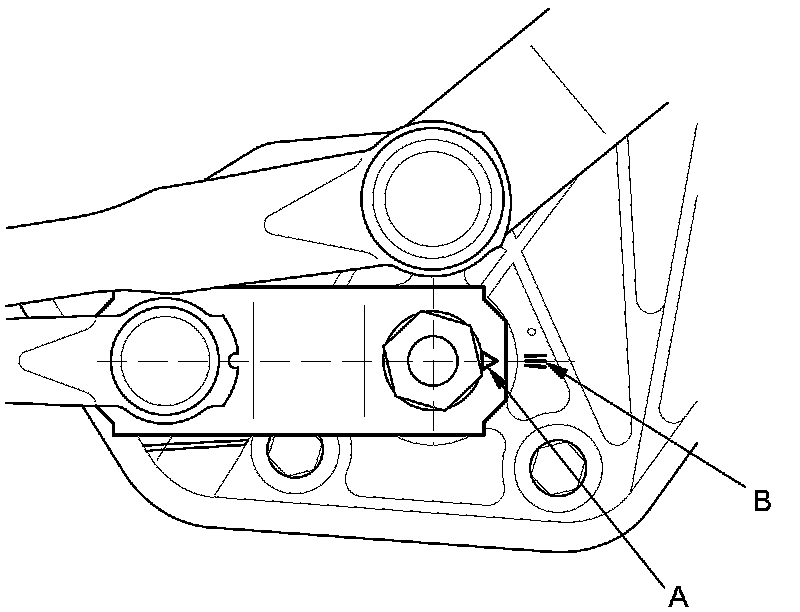 4. Before installing the wiper linkage assembly to the vehicle, mark sure the mark (A) of the link and the mark (B) of the linkage assembly are still aligned.