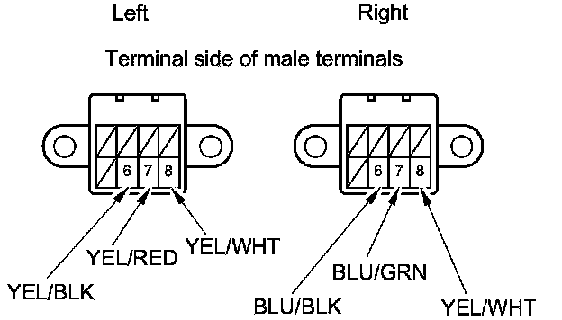 10. Insert the new actuator terminals into the connector in the original arrangement as shown.