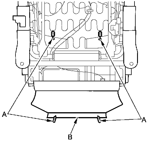 4. From under the seat cushion, release the hook springs (A), then pull away the bottom of the seat-back cover (B).