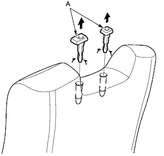 8. Pinch the tabs on the ends of the head restraint guides (A), and remove them from the seat-back.