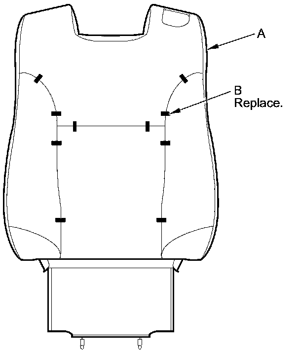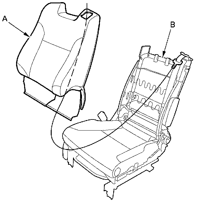 14. Remove the seat-back cover/pad (A) from the seat-back frame (B).