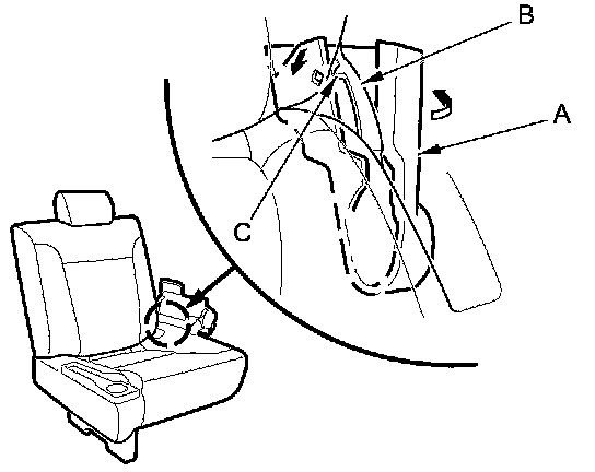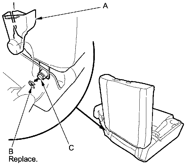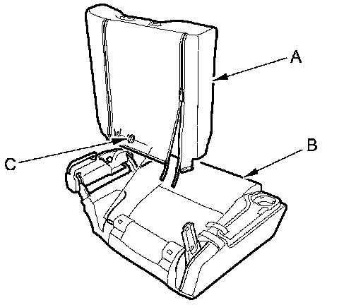 8. Separate the seat-back (A) from the seat cushion (B). If necessary, remove the bushing (C).