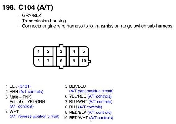 View 198 - C104 Connector View (A/T)
