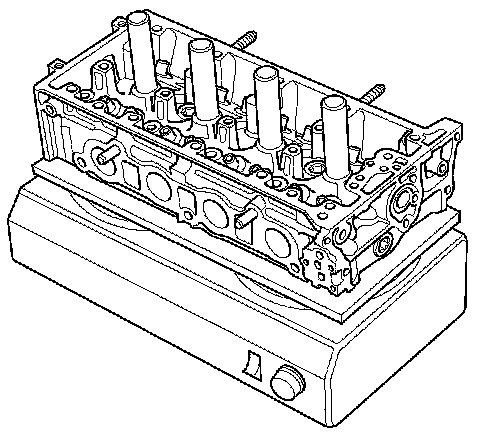 4. Use a hot plate or oven to evenly heat the cylinder head to 300 °F (150 °C). Monitor the temperature with a cooking thermometer. Do not get the head hotter than 300 °F (150 °C); excessive heat may loosen the valve seats.