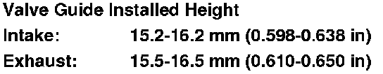 14. Check the clearances with a valve Valve Inspection. Verify that a valve slides into the intake and the exhaust valve guides without sticking.