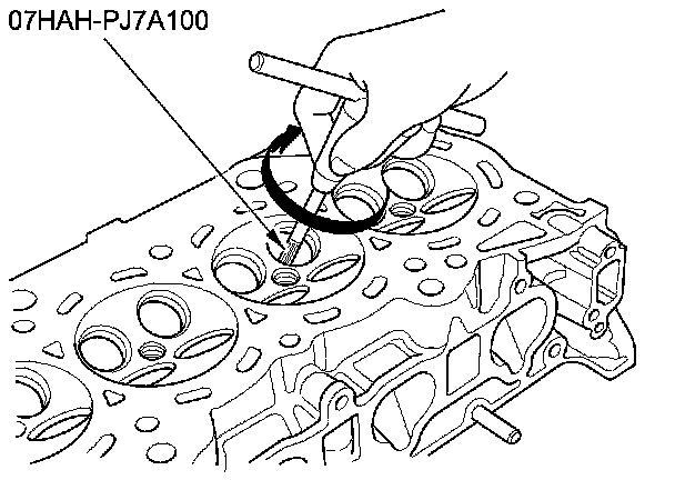 11. Rotate the valve guide reamer clockwise the full length of the valve guide bore.
