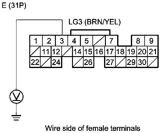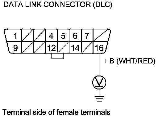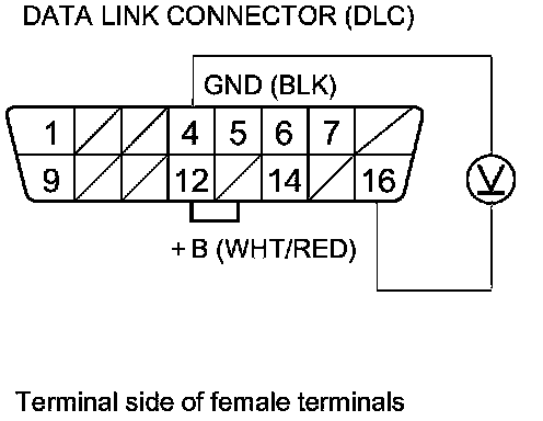 24. Measure the voltage between DLC terminal No. 16 and body ground.