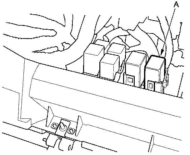 60. Remove the glove box Service and Repair, then remove PGM-FI main relay 1 (FI MAIN) (A).