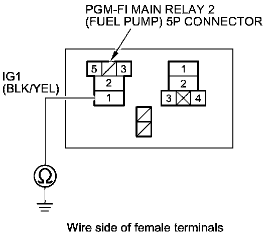 45. Test PGM-FI main relay 2 (FUEL PUMP) Testing and Inspection.