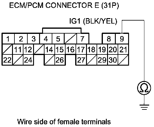 31. Check for continuity between ECM/PCM connector terminal E24 and DLC terminal No. 14.