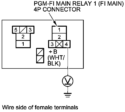 68. Measure the voltage between PGM-FI main relay 1 (FI MAIN) 4P connector terminal No. 2 and body ground.