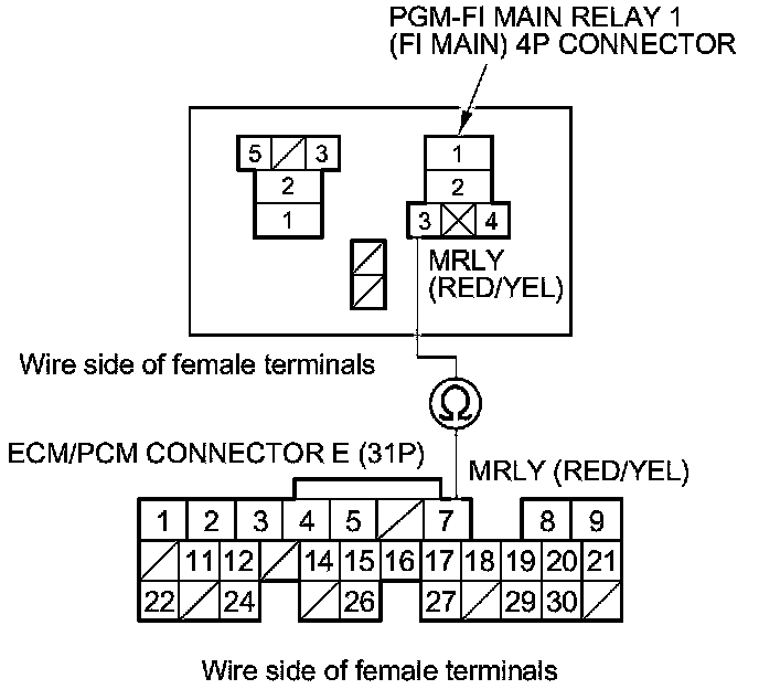 Repair open in the wire between the ECM/PCM (E7) and PGM-FI main relay 1 (FI MAIN).�